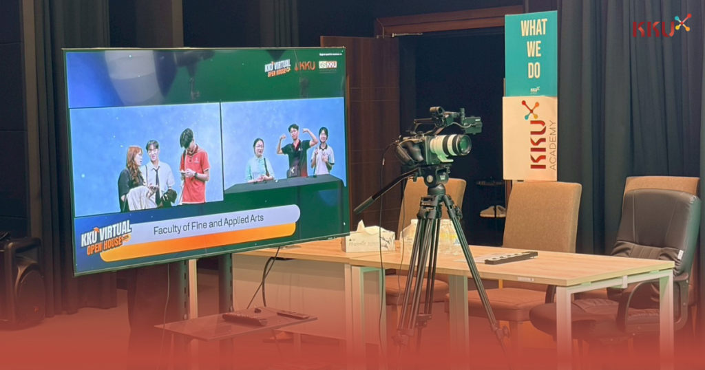This learning session formed part of the Digital Content course, which focuses on transitioning theory into practical application and the creation of tangible outputs. The KKU Academy staff guided the students through the studio used for course production, provided instruction on the use of cameras and various equipment, and offered an observation of the production preparations for the upcoming live-streamed KKU Virtual Openhouse, which is an important activity designed to publicise and provide guidance on degree programmes accepting international students, featuring lecturers and representatives from various faculties across the University, scheduled to take place at the KKU Academy’s facilities on the 9th Floor of the Information Building, Khon Kaen University.