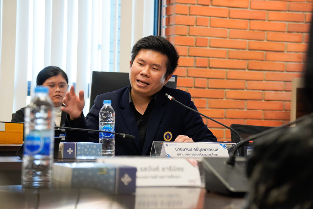 Mr. Chanon Sriburapapirom, Director of the Division of Education Administration, along with the MUx instructional design and learning management team, shared insights into their online course production workflow and LMS operations. He emphasized that the key to successful online course development lies in creating content that genuinely meets learners’ needs. This requires defining clear target groups and continuously assessing both societal demands and learners’ expectations.